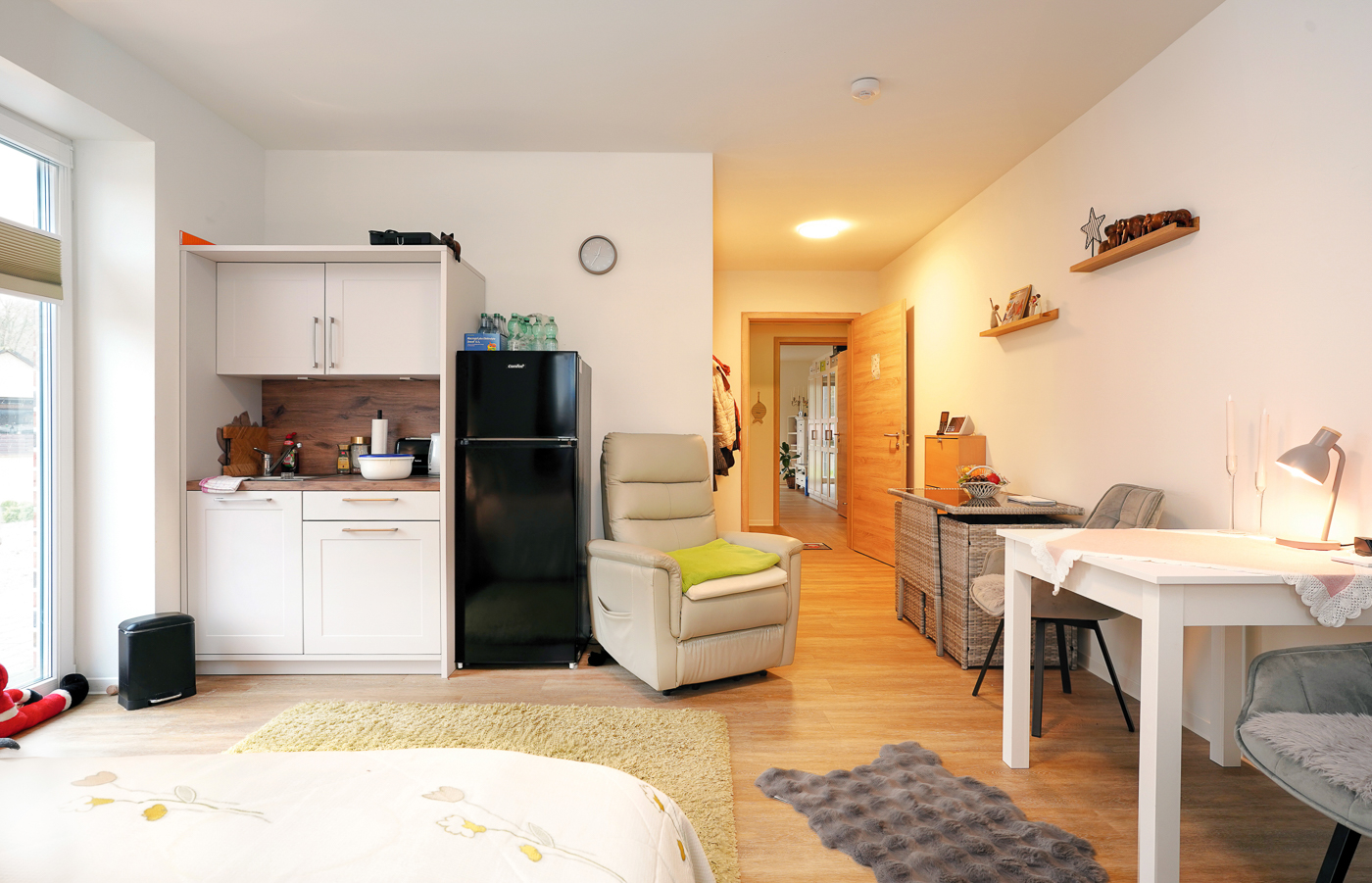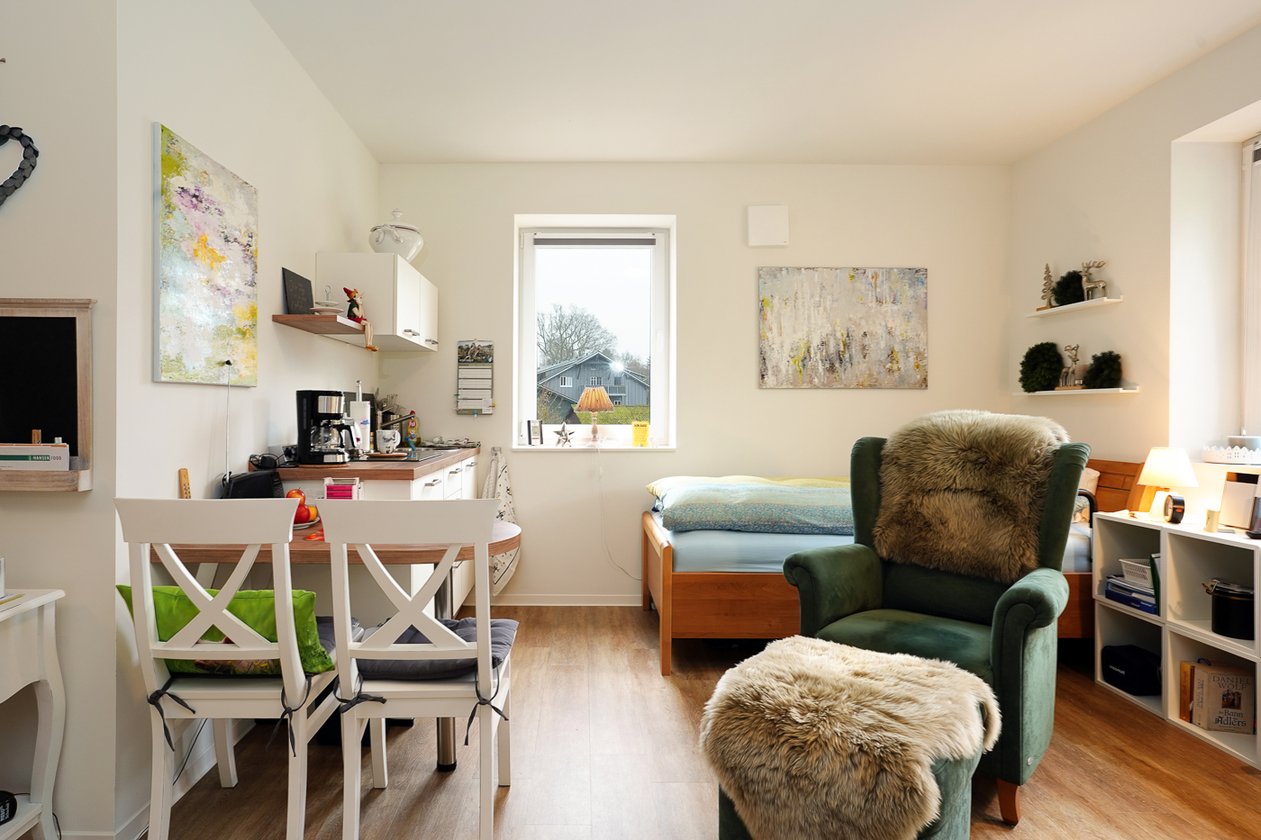 In unserer liebevoll gestalteten Anlage in Wittenborn bieten wir zehn barrierearme Mikroappartements an. Jedes Appartement verfügt über eine Terrasse und Zugang zu einer großen Gemeinschaftsfläche, die zum Verweilen und Miteinander einlädt. Fünf der Appartements sind zudem mit einer Pantryküche ausgestattet.